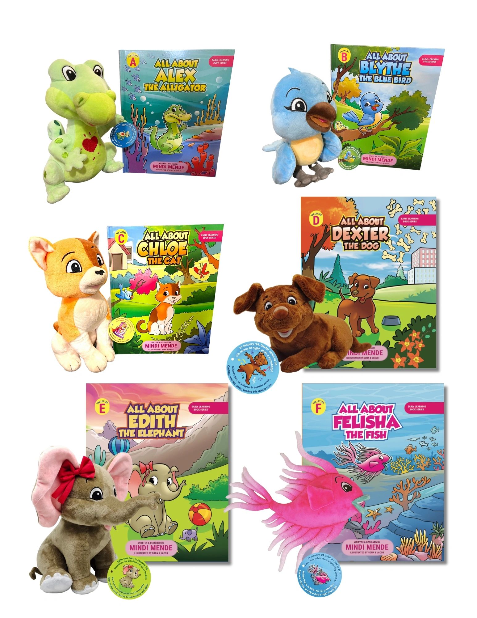 The first six books and their plushie animals are available NOW!